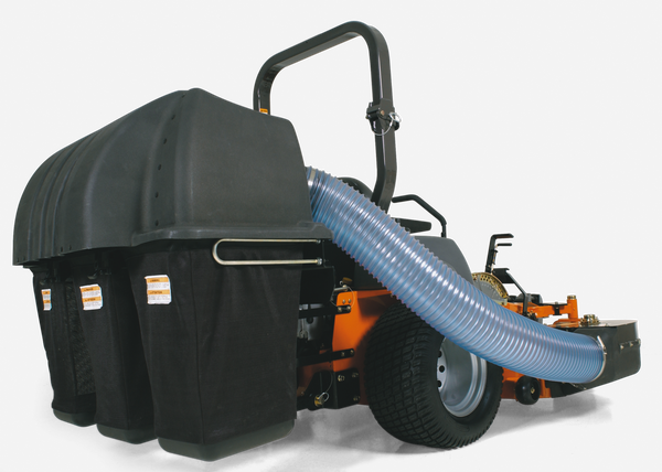 The rugged collection system features 3 nylon bags, 9 bushel capacity and heavy duty deck mounted blower assembly for increased airflow. (drive kit required and sold separately)